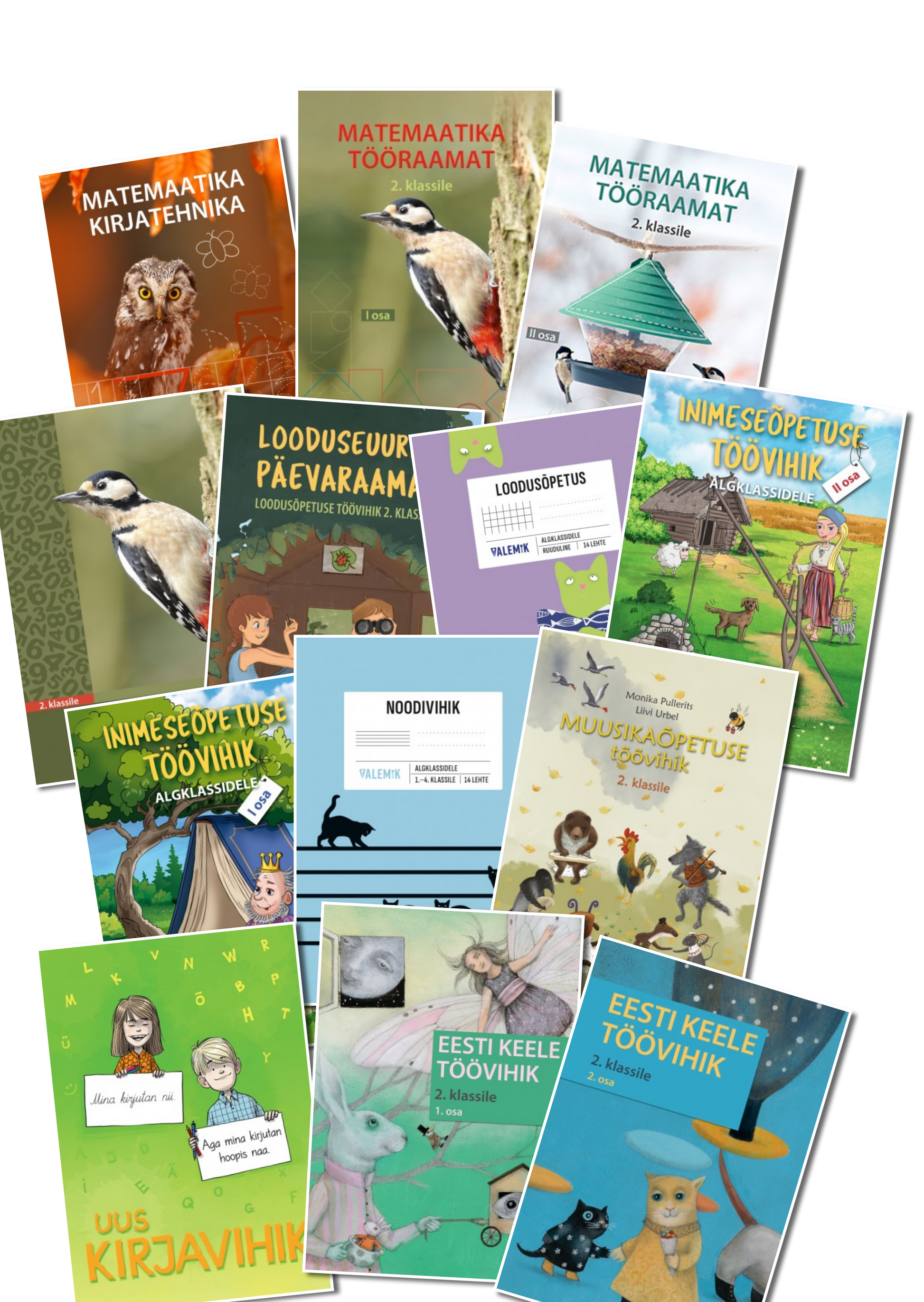 Antud kilekaaned sobivad pildil olevatele teise klassi raamatutele ja töövihikutele: