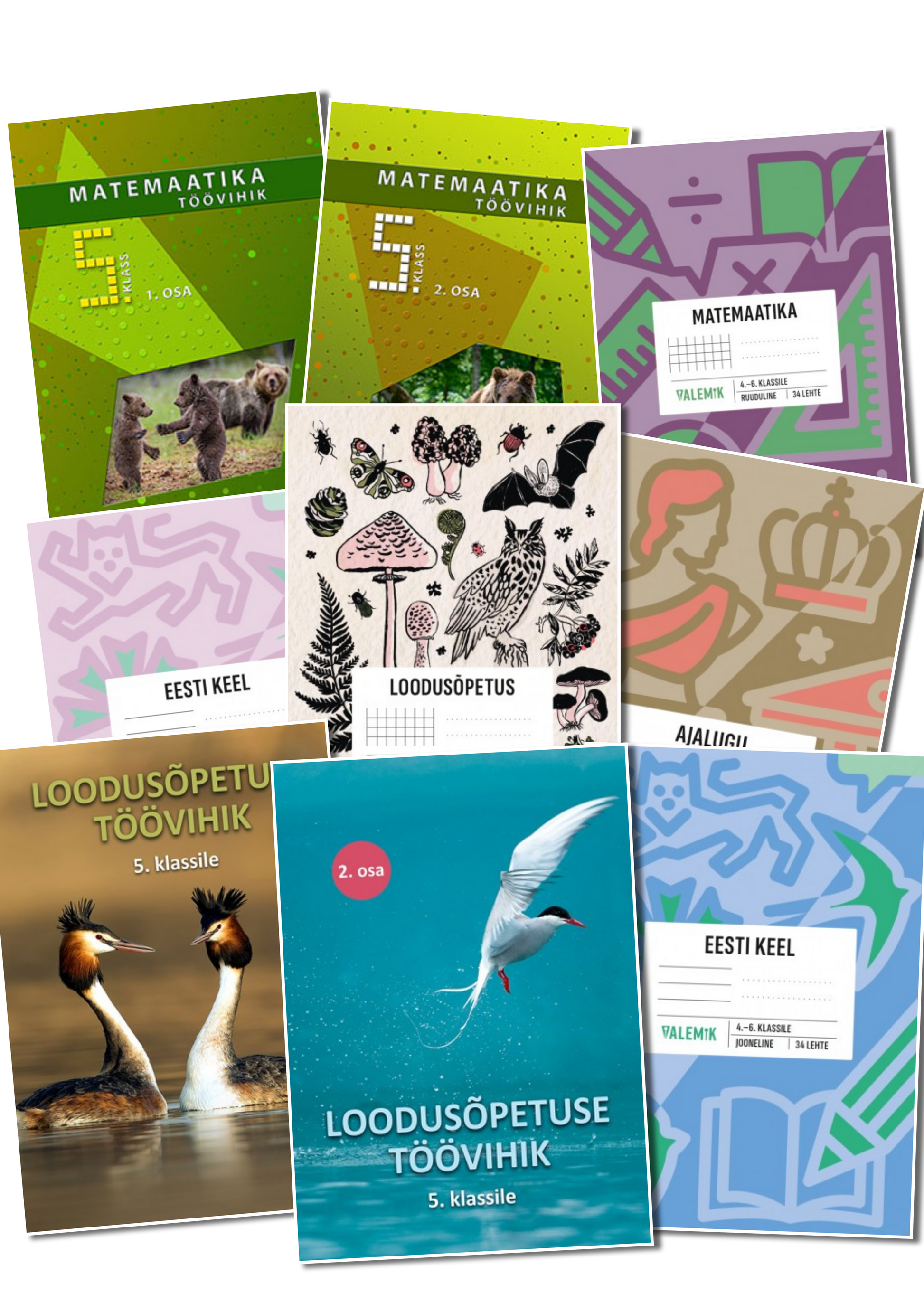 Antud kilekaaned sobivad pildil olevatele viienda klassi raamatutele ja töövihikutele: