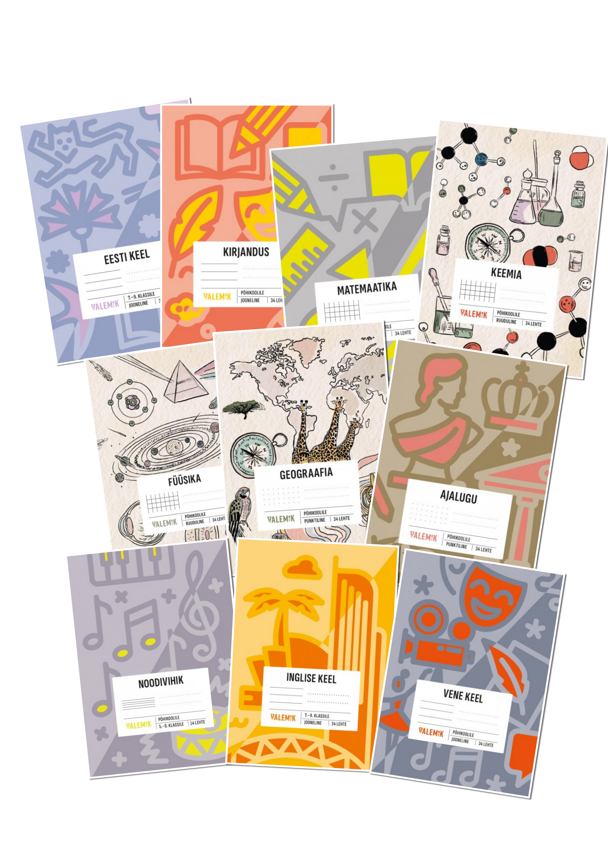 Antud kilekaaned sobivad pildil olevatele üheksanda klassi raamatutele ja töövihikutele: